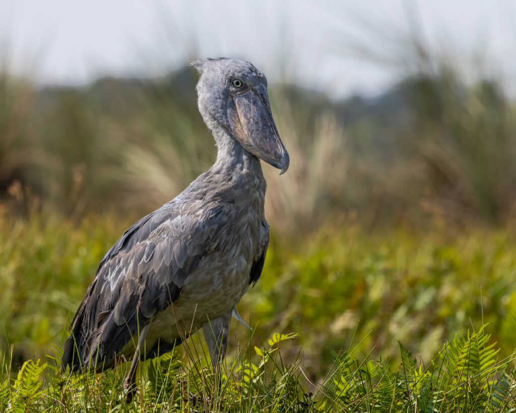 Hanna litla fór líka með mig í siglingu um Mabamba-fenin nálægt bænum Entebbe til að skoða skónefinn, einstakan fugl sem stundum er kallaður konungur fenjanna í mið- og austanverðri Afríku. Hann er forn í útliti, minnir marga á risaeðlur, og var talinn skyldur storkum en genarannsóknir benda til þess að hann sé skyldastur pelikönum. Skónefurinn er um 124 cm á hæð, með rúmlega 230 cm vænghaf og vegur fullvaxinn 5,5 til 5,8 kílógrömm. Goggurinn er 20 cm á lengd og næstum jafn breiður þar sem hann er mestur um sig. Hann lifir aðallega á fenjafiskum á borð við lungnafiska og veiðir líka froska.