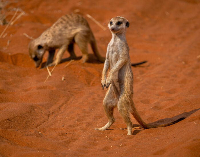 Krúttlegustu dýrin sem við sáum í Namibíu eru jarðkettir (e. meerkats) sem lifa í sunnanverðri Afríku, þ.e. í Suður-Afríku, Botsvana og Angóla, auk Namibíu. Jarðkettir lifa í göngum sem þeir grafa í jörðina og fóðra með grasi. Þeir eru oftast í 20-30 dýra hópum og lifa á jurtum og ýmsum smádýrum, svo sem skordýrum, litlum snákum, nagdýrum og fuglum. Þegar hópurinn veiðir sér til matar standa tveir jarðkattanna á varðbergi á afturfótunum og gefa frá sér hljóð til að vara hina við þegar hætta steðjar að. Jarðkettirnir forða sér þá í göngin.