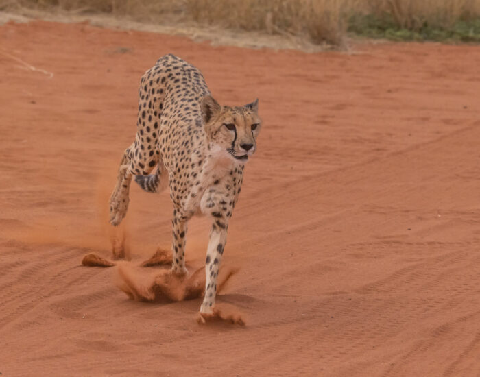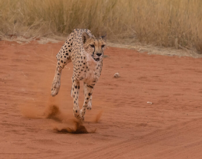 Blettatígrar eru spretthörðustu dýr jarðar og geta náð yfir 110 km hraða á klst. á aðeins þremur sekúndum. Þegar þeir eru á fullu skriði er skreflengd þeirra sex til sjö metrar. Blettatígrar lifa á gasellum, impalahjörtum, meðalstórum antílópum, hérum, fuglum og nagdýrum. Þeir þurfa oft að sjá eftir bráð sinni í gin sterkari dýra, svo sem ljóna og híena sem eru skæðir keppinautar þeirra og veiða oft hvolpa þeirra sér til matar. Blettatígrar (þ.e. bæði kynin) lifa að meðaltali í 10 til 12 ár en meðalævilengd karldýranna er aðeins tæp 8 ár, m.a. vegna þess að margir þeirra drepast í baráttu um landsvæði. Blettatígrar hafa misst um 90% búsvæða sinna í heiminum og talið er að núna lifi aðeins um 7.100 blettatígrar í villtri náttúru. Þeir eru verndaðir í Namibíu og þar eru fleiri blettatígrar en í nokkru öðru landi.