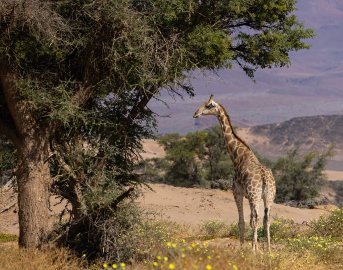 Við Hanna litla skoðuðum dýr sem lifa í Namib-eyðimörkinni, m.a. sandgekkó, kameljón og eðlu sem dansar og kafar í sandinn. Þessi dýr hafa lagað sig að aðstæðunum í elstu eyðimörk heims.