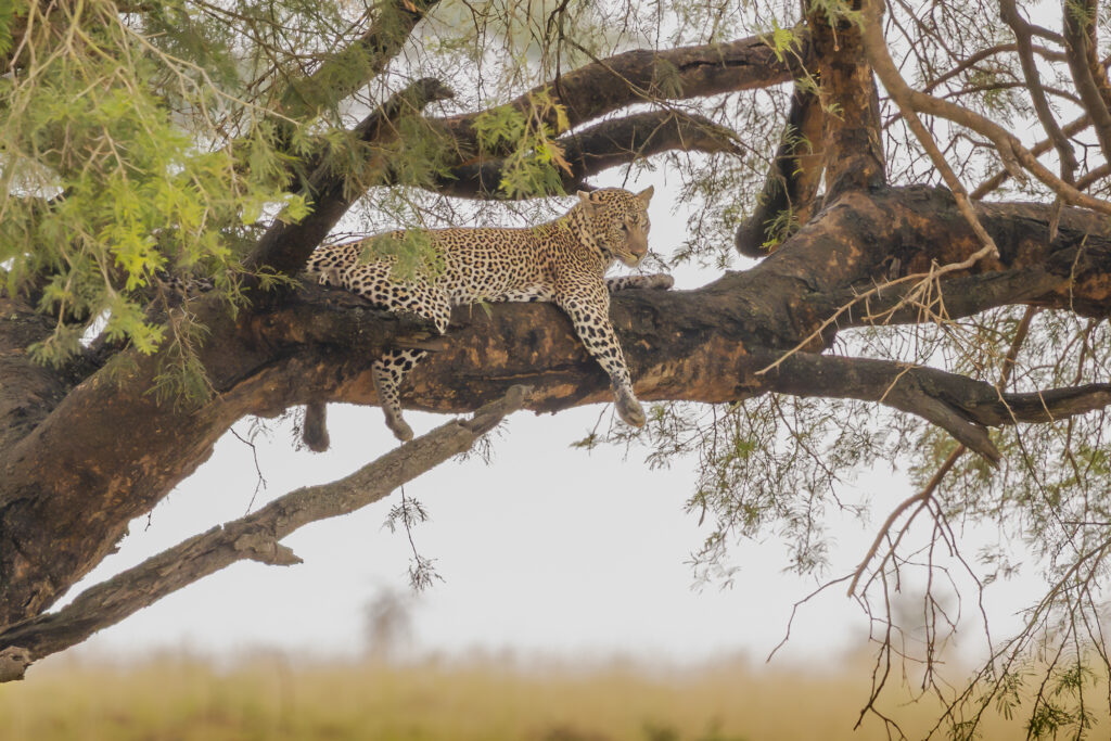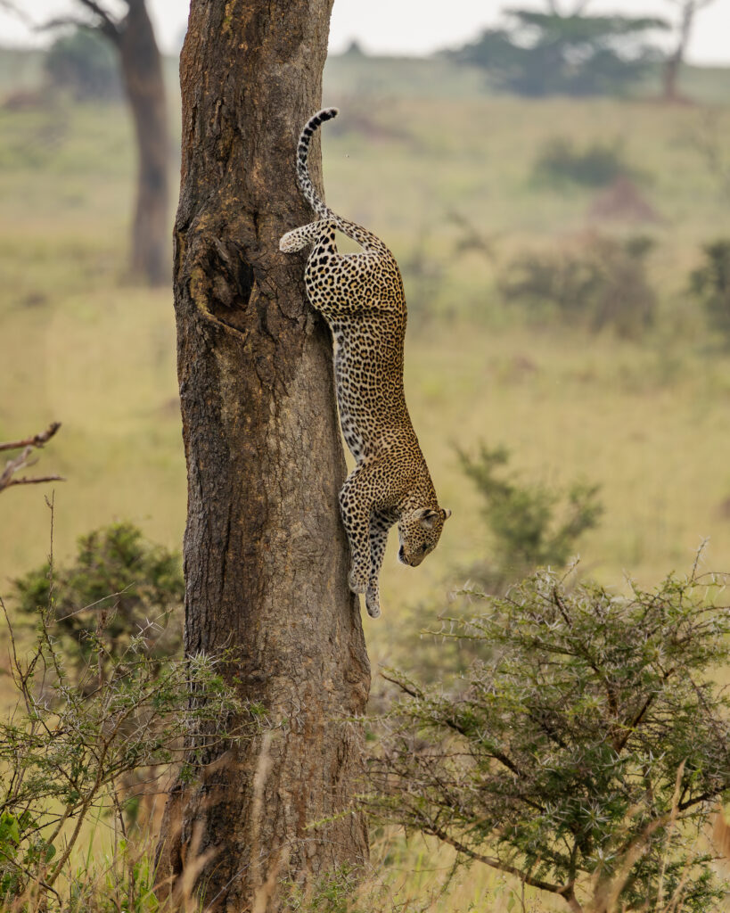 Við Hanna litla skruppum til Úganda í október og sáum meðal annars hlébarða veiða litla antílópu sér til matar. Við tókum fyrst eftir honum þegar hann var uppi á tré í þjóðgarði sem kenndur er við Murchison-fossana í Níl. Hlébarðinn var að fylgjast með antílópuhjörð, orrabukkum, og læddist niður tréð þegar hann hafði valið auðveldustu bráðina. Svangir hrægammar birtust fyrir ofan hlébarðann og bráðina. Nokkrar antílópur sneru við og fetuðu sig varlega í átt að stóra kattardýrinu, ef til vill í veikri von um að það sleppti litla greyinu. Hlébarðinn klifraði þá upp á nálægt tré með bráðina í kjaftinum og lagðist síðan kylliflatur upp á grein í skugga trjákrónu til að hvíla sig eftir erfiðið. Hann lá þar enn þegar við héldum áfram ævintýralegri ferð okkar um Perlu Afríku með góðum hópi ferðalanga á vegum Obeo Afríku.